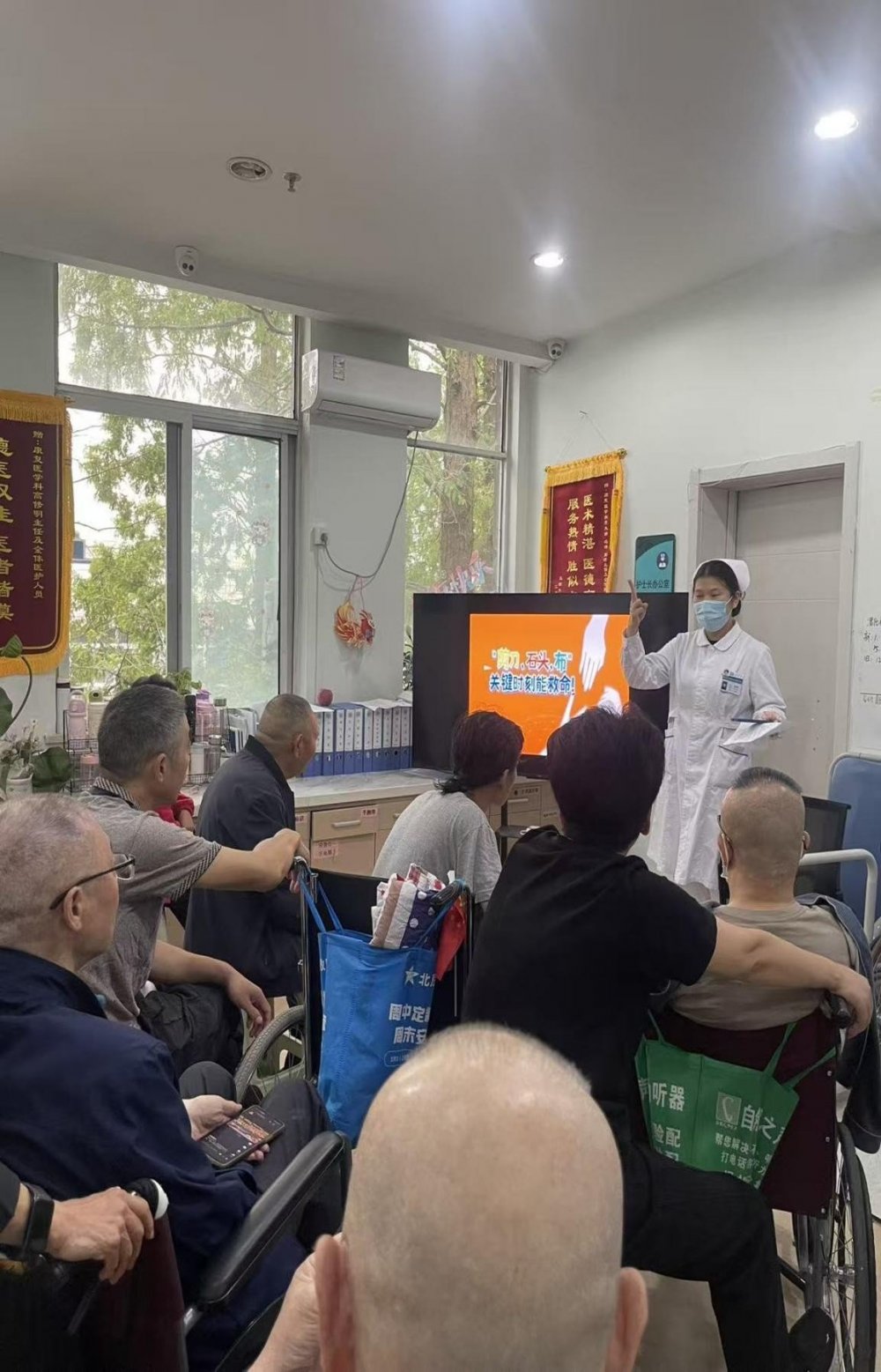 在互动实操环节,病陪人员们热情高涨,纷纷上前进行模拟操作。护士们一对一进行指导,耐心纠正不规范的动作,确保每位参与者都能准确掌握操作技巧。“以前只在电视上见过海姆立克急救法,今天亲手操作后,才真正明白每个动作的要点,以后万一遇到紧急情况,也敢上手了。”一位参与培训的家属说道。