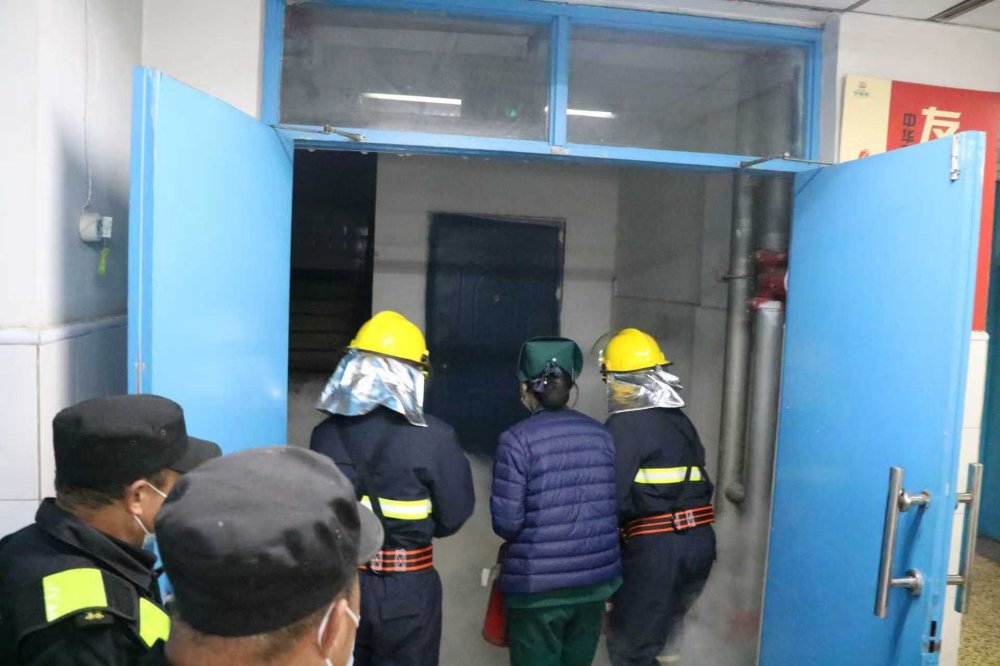 警报响起后,各病区负责人迅速组织处置,在岗医护人员分工明确、临危不乱:一组关闭氧气阀门、切断非必要电源消除次生风险;一组引导可自主行走患者捂鼻沿最近安全出口撤离;对行动不便及危重患者,医护与安保队员协同,按“重病优先”原则借助担架、轮椅转移,疏散过程紧张有序。
